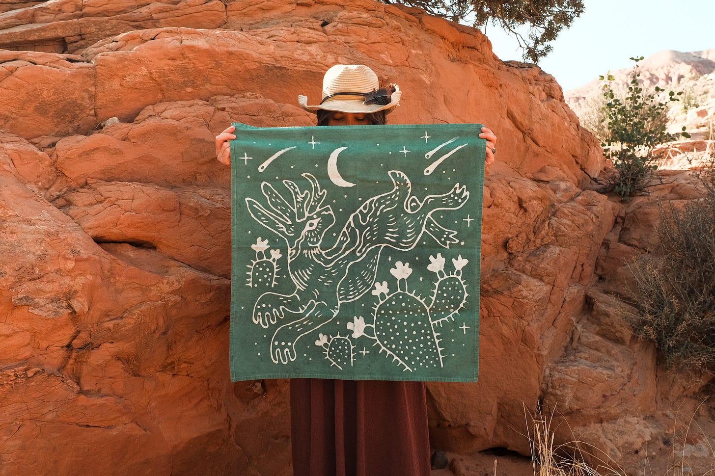 The process is slow, detailed, and very hands on from sketching the designs to laying down the resist, hand dyeing and finishing. Even if I repeat a motif, every piece turns out a little different, which is kind of the magic of it. Some colors react with the fabric in unexpected ways, and part of the process is just letting go and seeing what happens.