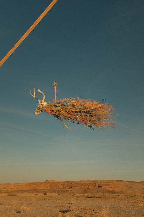 This Entity is born from dust and tumbleweed, sun-bleached bone and roadside plastic. The heat was oppressive, It was 102 degrees out, the ground much hotter. The air heavy & thick with the stinging haze of distant wildfire smoke. You could taste the stinging burn of the dragon bravo fire on the wind, it had been looming over South East Utah for days now. I walked the blistering desert, searching for the right artifacts.